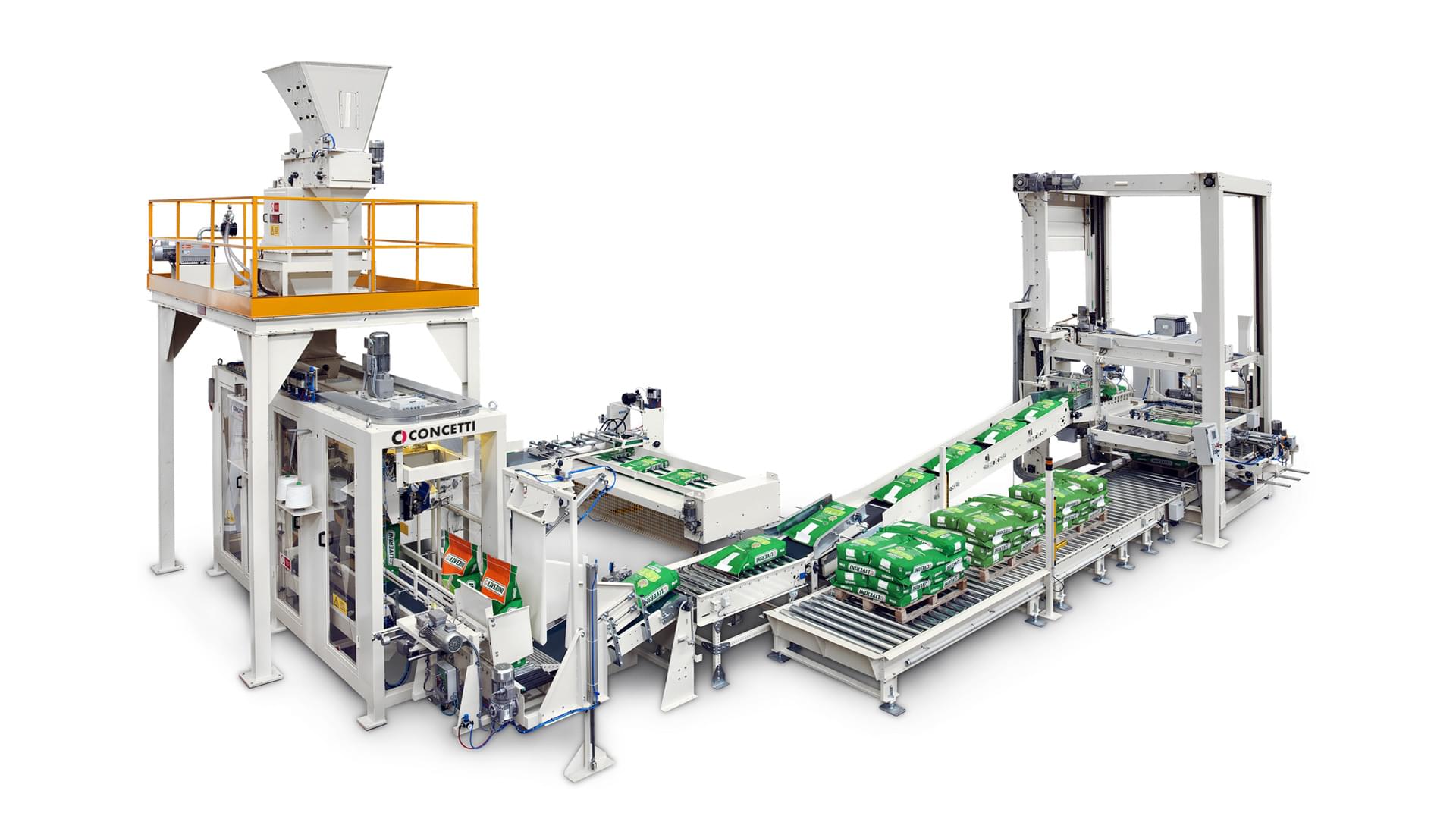 Het magazijn kan platte of geplooide zakken verwerken van papier, PE, PP of raffia.